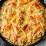 Make Chicken Pot Pie in a skillet with buttery puff pastry on top! Creamy chicken, tender veggies, and flaky crust all in one pan.