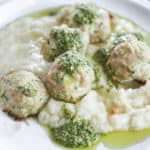 These Whole 30 Chicken and Zucchini Meatballs can be made ahead of time; they’re paleo and low-carb, and light in calories! I think they may be the perfect food, really. You can add these meatballs to Feel free to pasta, zoodz, wraps, or simply by themselves! Currently, I gave them a comforting side of mashed cauliflower and pistachio pesto, and they did not disappoint.