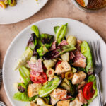 This easy Chickpea Tuna Salad is a fresh mix of salad veggies and two pantry staples that are always on hand; canned chickpeas and canned tuna!