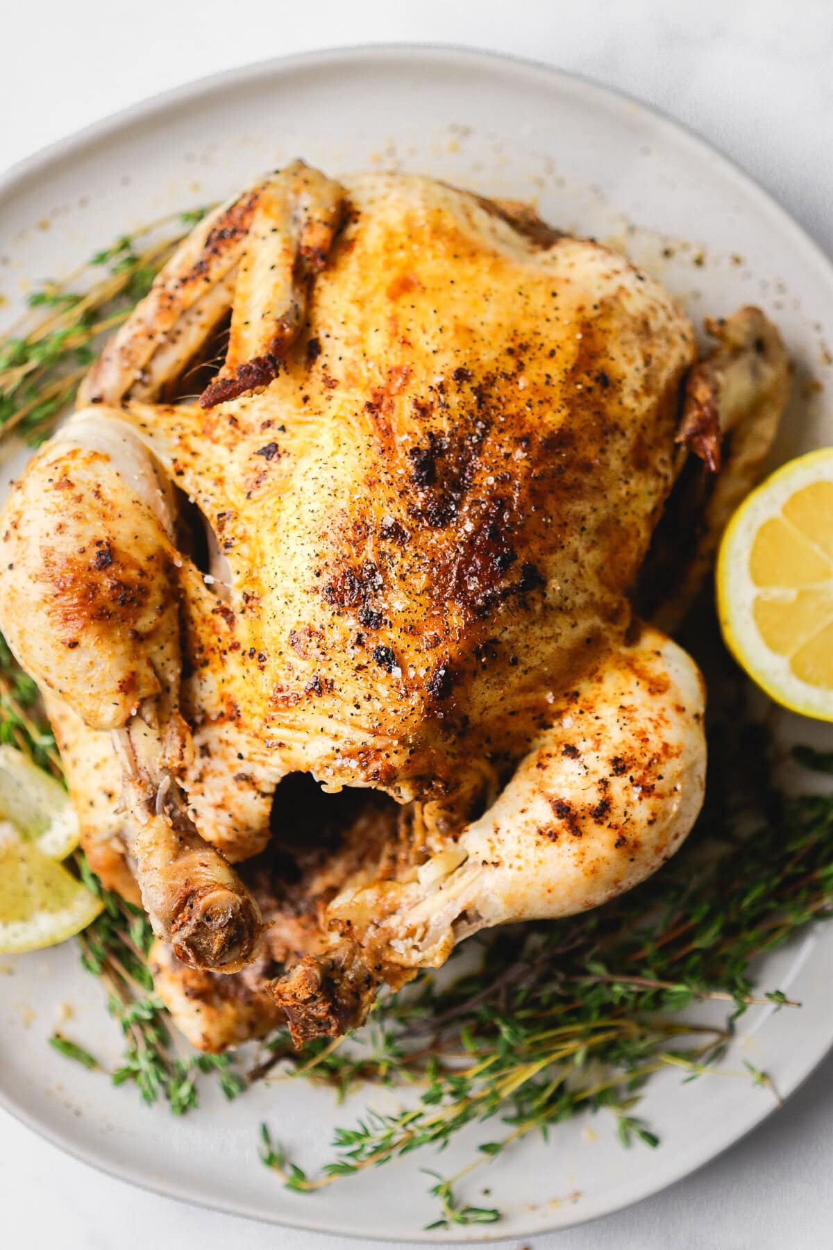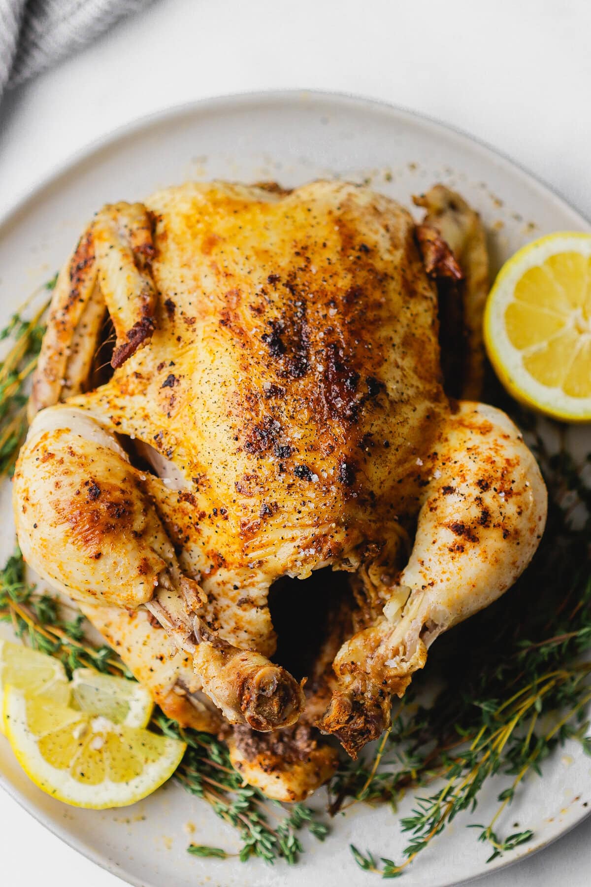The lemon and onion are totally optional. If I’m making this more like a rotisserie-style chicken for meal prep, I usually skip them. But if I’m serving it whole for dinner with sides, I love adding them for that extra flavor.