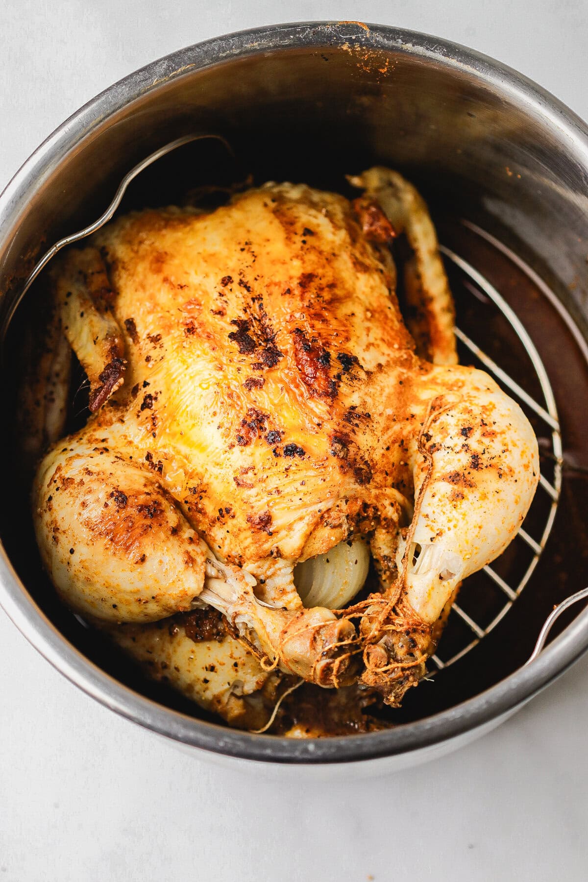 I first tested and shared this recipe back in 2018, which honestly feels like a lifetime ago. I used to be terrified of my electric pressure cooker and would only use my Instant Pot for shredded chicken breasts. But eventually, I got over myself, and now I use it weekly, especially for a whole chicken. It’s hands-down one of the easiest ways to cook a whole chicken in my kitchen.