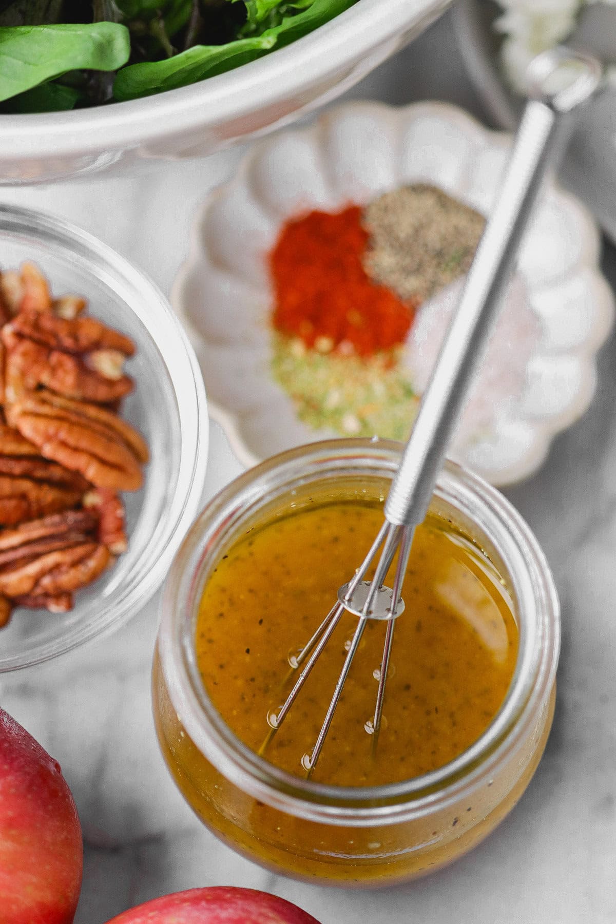 - Dijon mustard: Gives the dressing a subtle creaminess and helps everything emulsify/blend together.